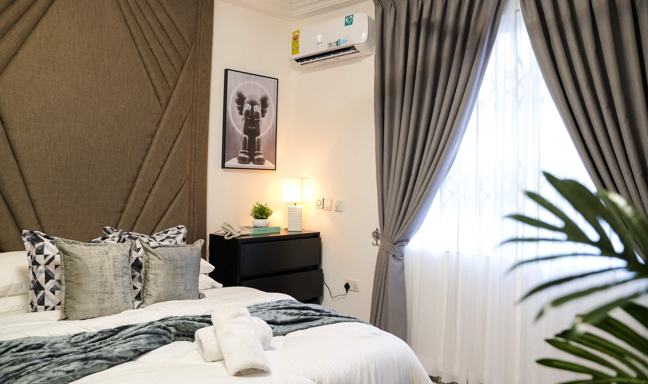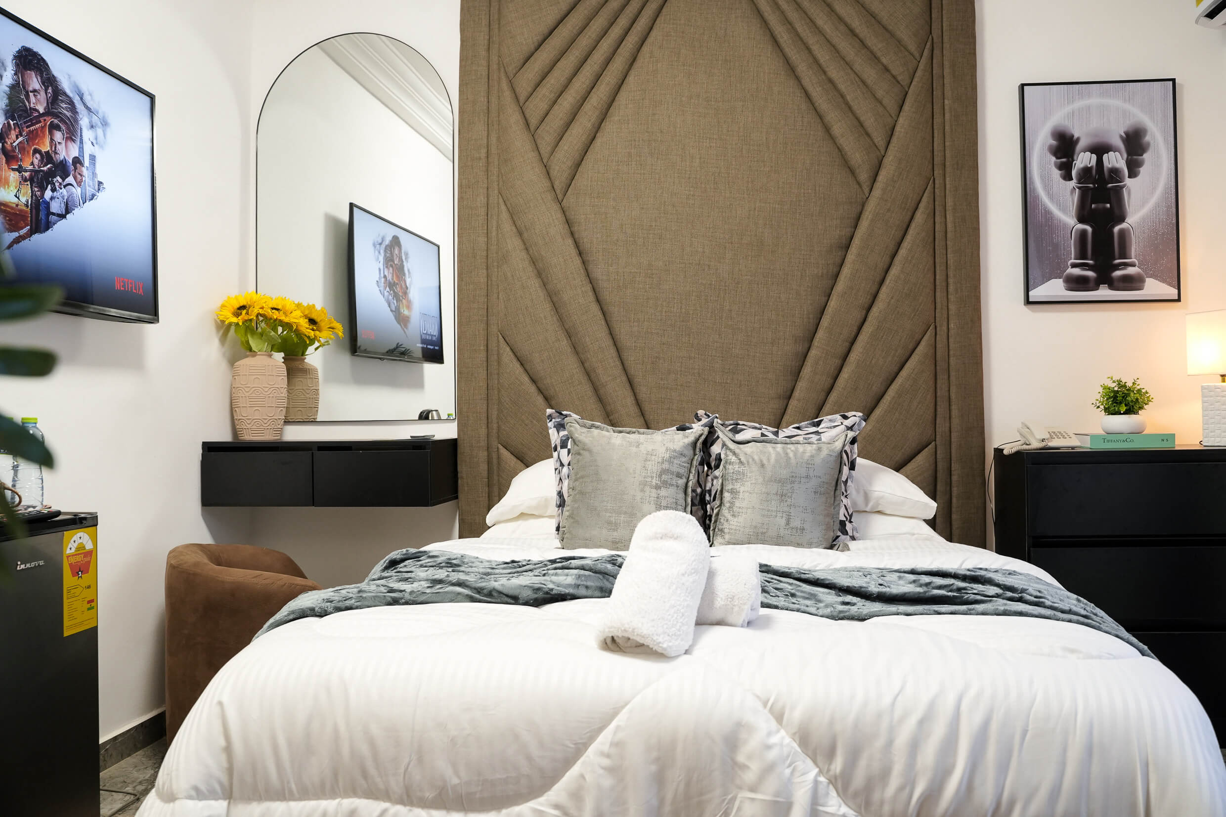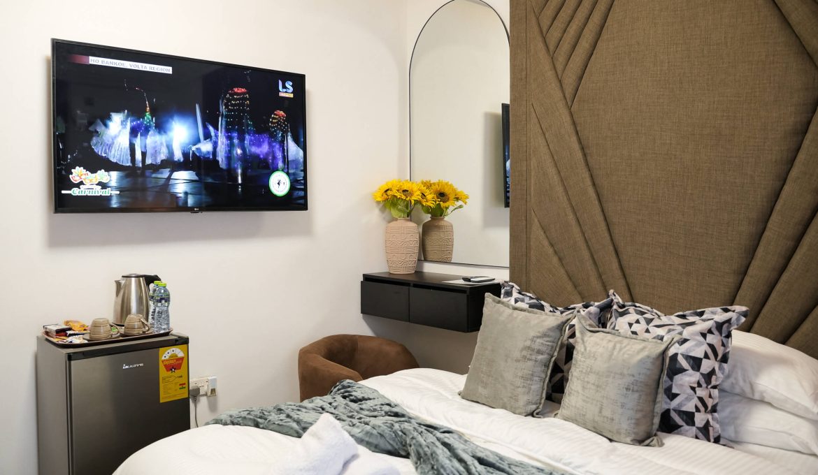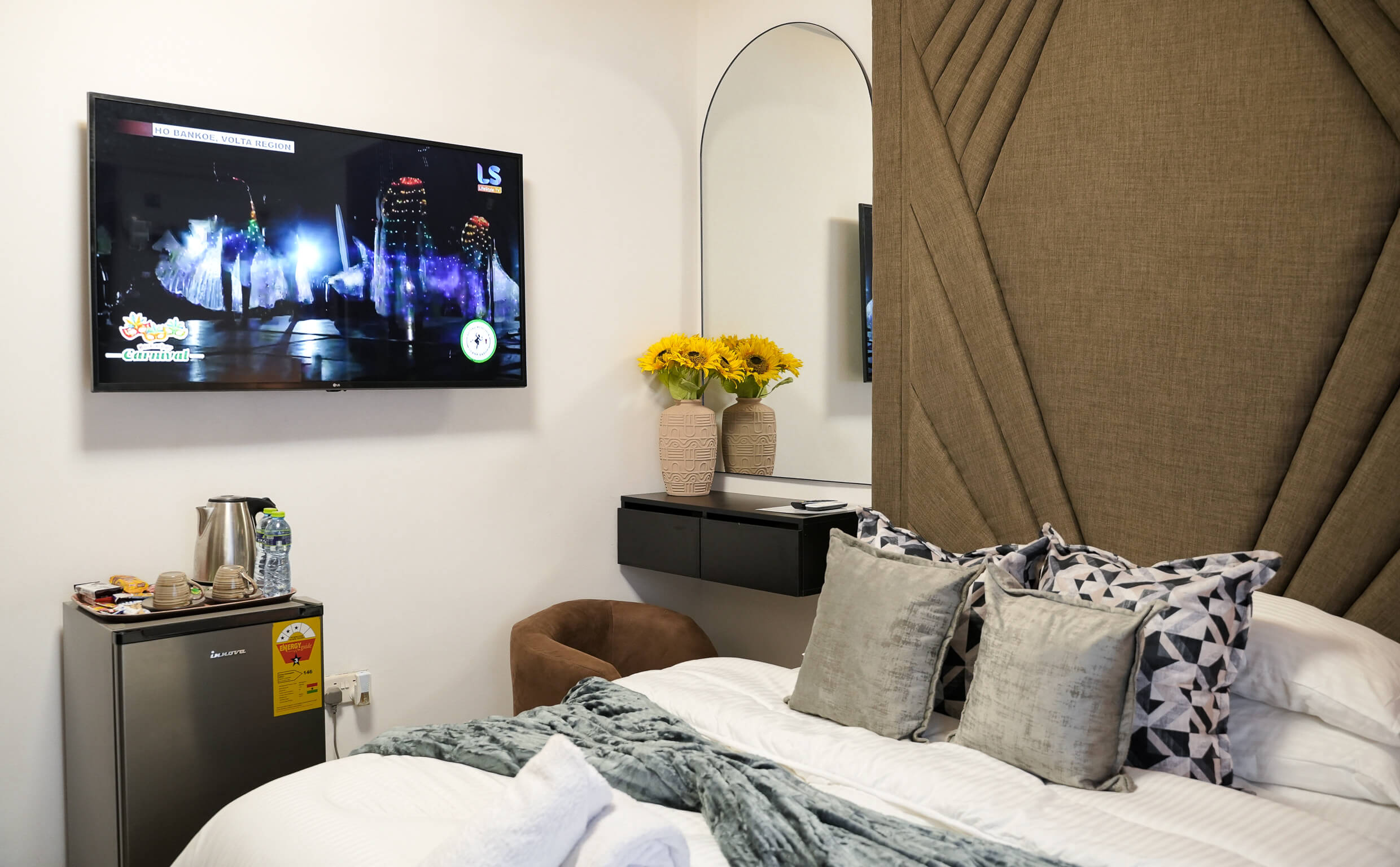 Our Standard Prime room offers a cozy aesthetic and a comfortable atmosphere for guests seeking to invest a little more for added value. This room features an exclusive tea setup for guests who prefer to enjoy their beverages at any time. The room is equipped with a Smart television, air conditioning, a fridge, complimentary breakfast, free Wi-Fi, laundry services, a water heater, a standby generator, a comfortable couch, and a study area.